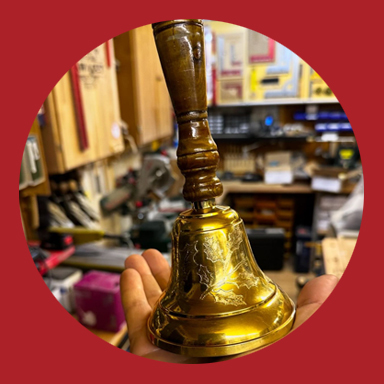 Mit dem von Hand gravierten Glöckchen werden die Kinder auf Santa aufmerksam.