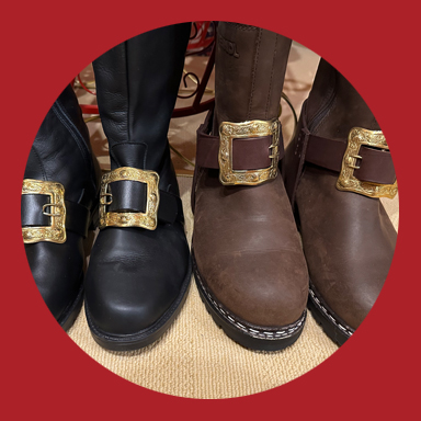 Santa trägt selbstverständlich schwere Stiefel aus echtem Leder. Wahlweise schwarz oder braun - entsprechend ist natürlich auch die jeweilige Farbe des Gürtel.